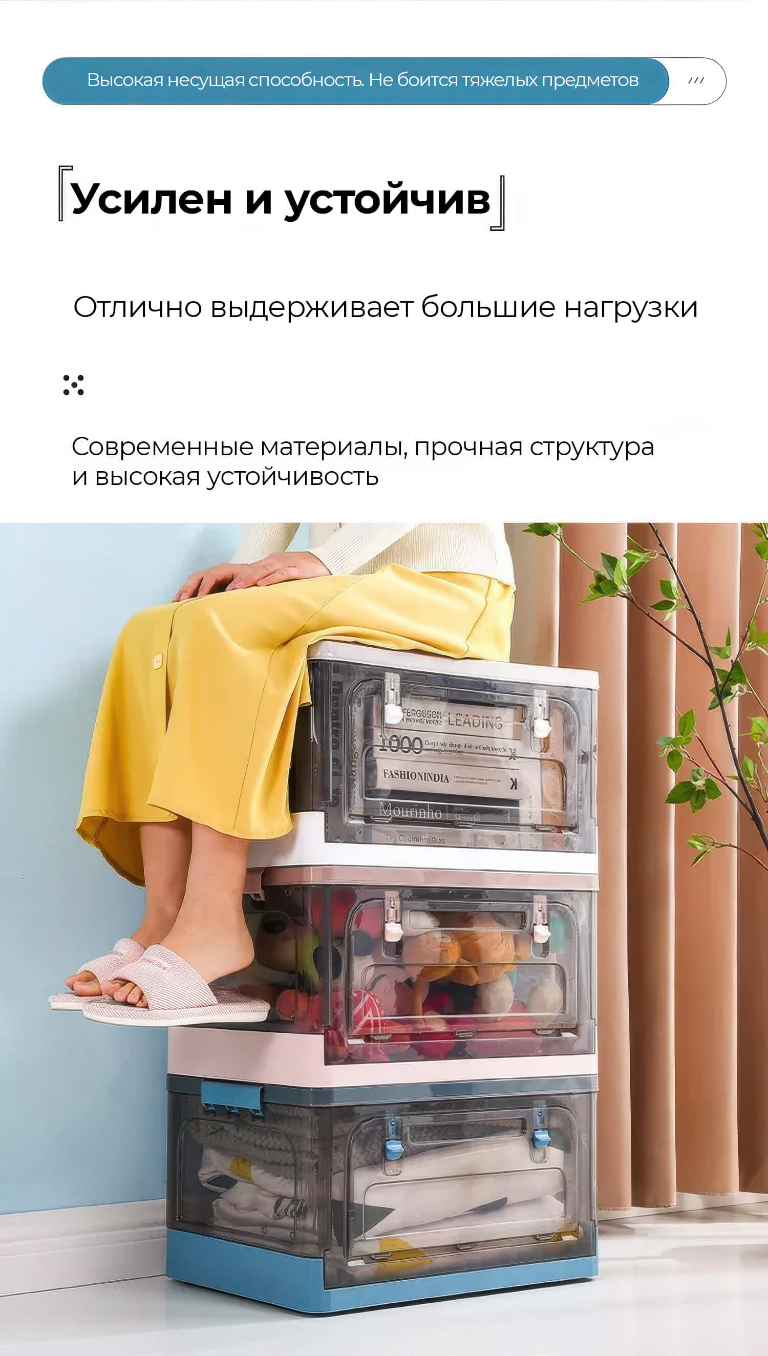 Пластиковая коробка с крышкой надежно защищает вещи от пыли и влаги, обеспечивая порядок и чистоту. Прочная конструкция выдерживает нагрузку и гарантирует долговечность. Колесики делают передвижение легким и удобным, а складная конструкция позволяет экономить место, когда ящик не используется.