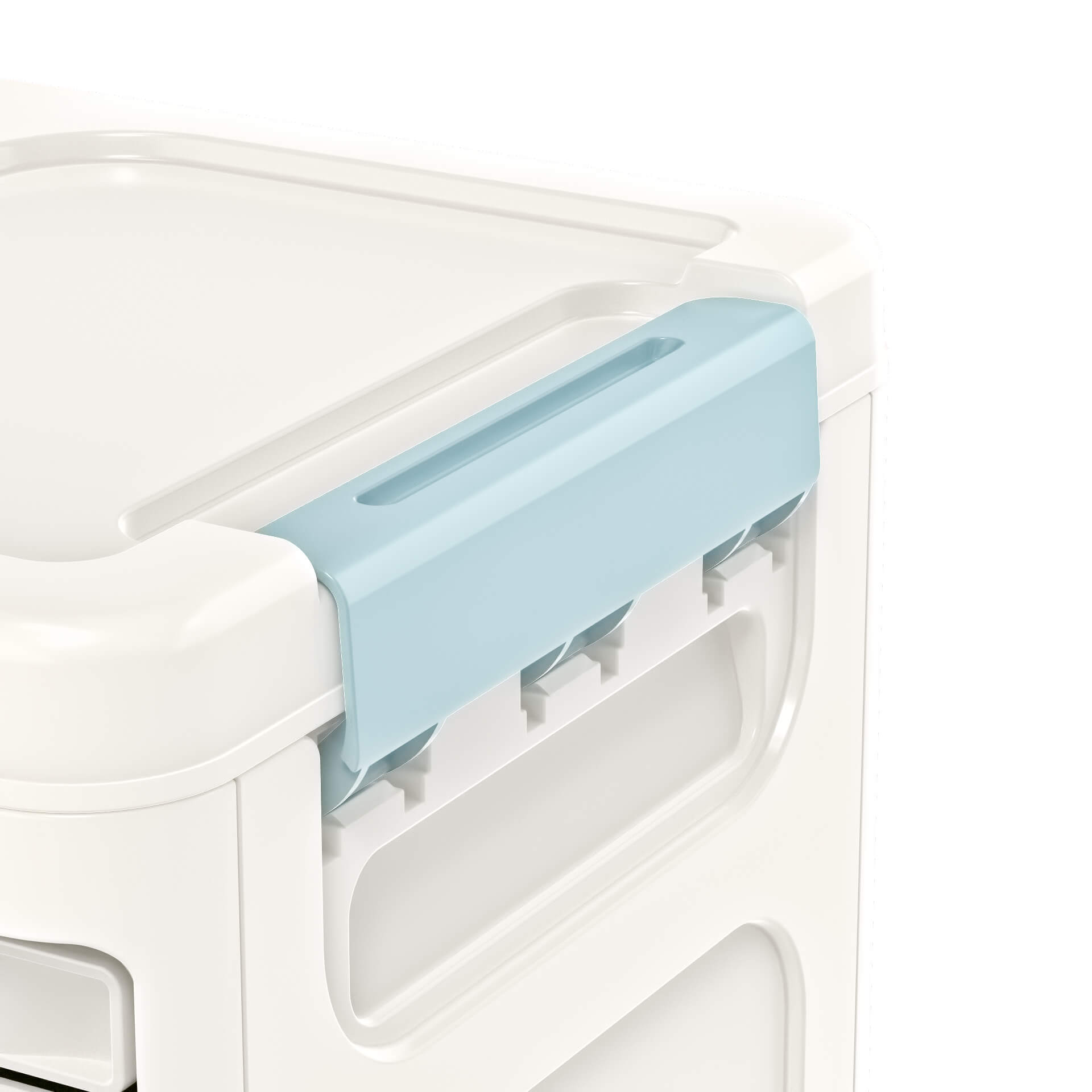 Стильный внешний вид – сочетание молочного и голубого цветов создает ощущение чистоты и порядка.